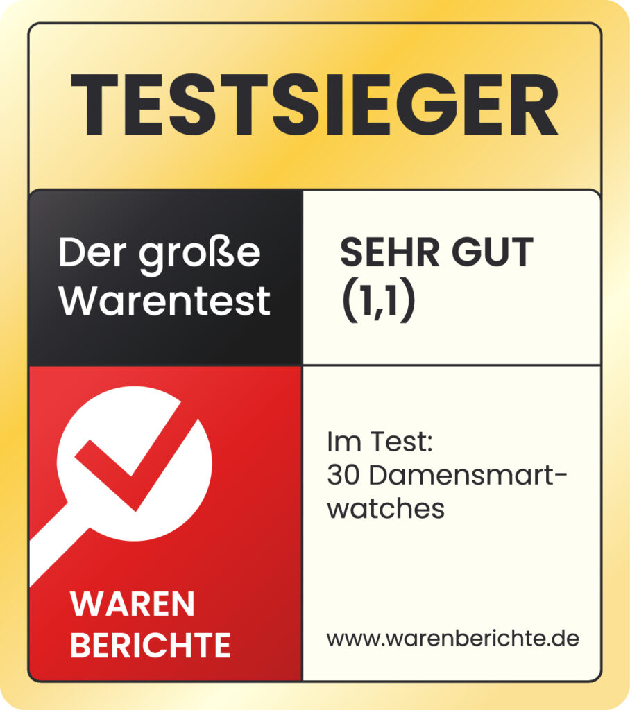 Die Damen Smartwatch Pro hat uns im Alltag überzeugt: schön, smart und sorglos im Handling. Genau die Mischung, die man täglich spürt – im Büro, beim Sport, abends auf dem Sofa. Unser Platz 1 – und eine klare Kaufempfehlung.